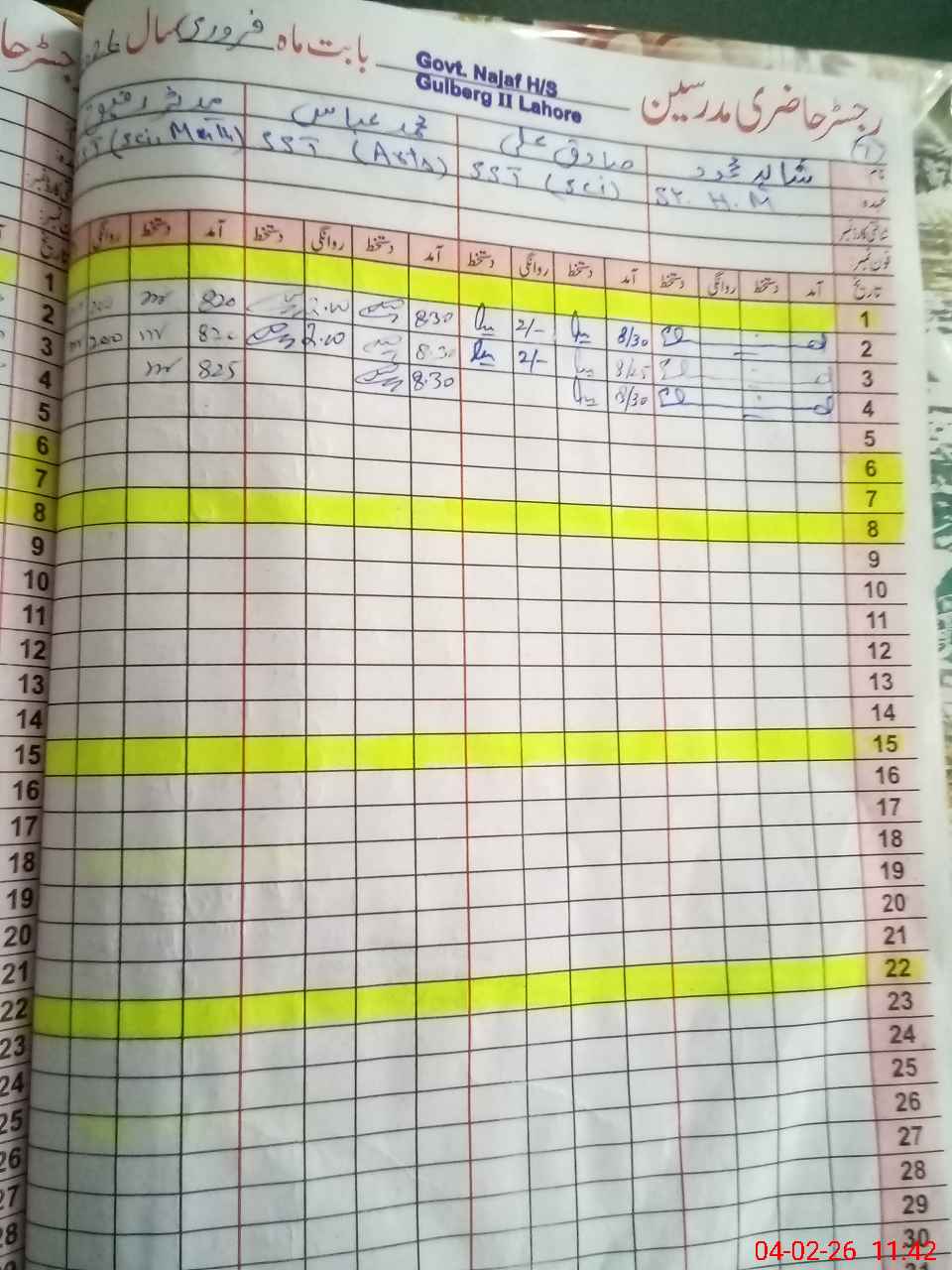 | CNIC | Full Name | Designation | R/C | Absence During Last Calender Month |