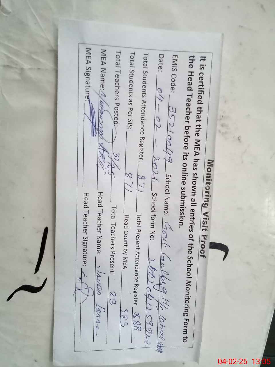 | EMIS Code: 35210049 | Name of School: GHS GULBERG LAHORE CANTT (FATEH ABAD) | |||