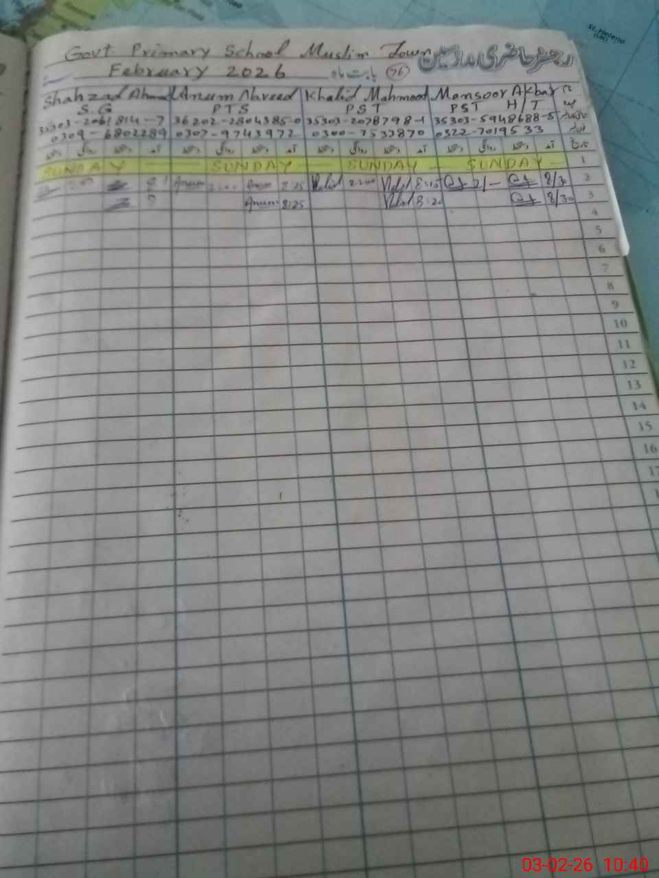 | Name: Ma**** Ak**** Designation: (School Headmaster's/Headmistress's) ESE SCI MATH Phone/Cell Number: 03**** |