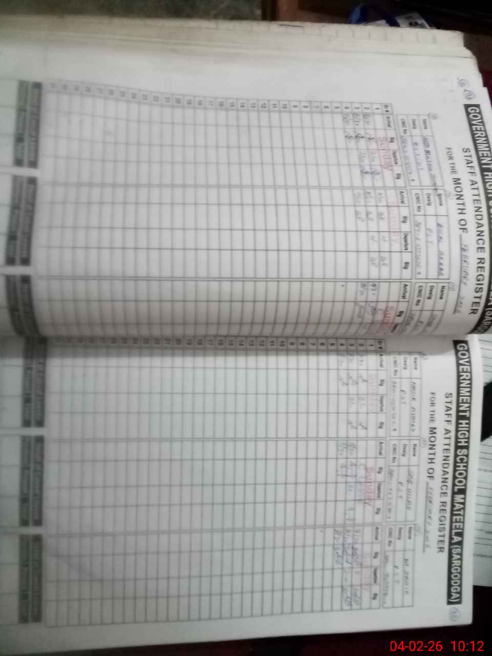 | CNIC | Full Name | Designation | R/C | Absence During Last Calender Month |
