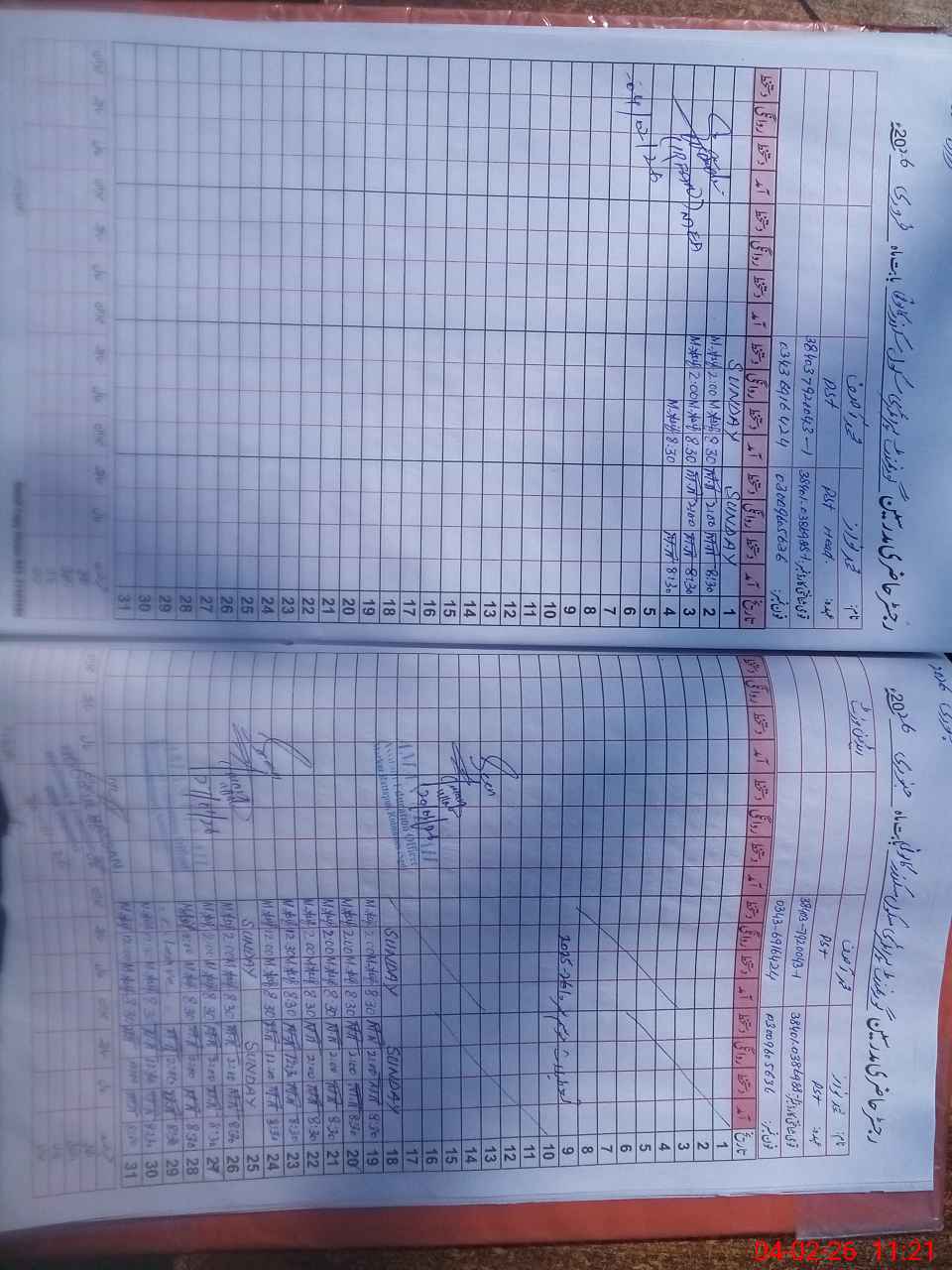 | CNIC | Full Name | Designation | R/C | Absence During Last Calender Month |