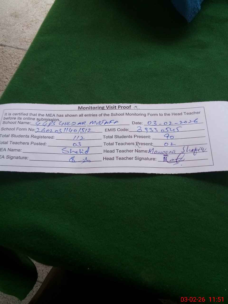 | EMIS Code: 39330545 | Name of School: GGPS GULZAR E MUSTAFA | |||