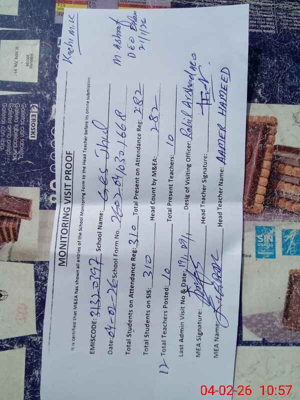 | EMIS Code: 31320397 | Name of School: GES JHUL | |||