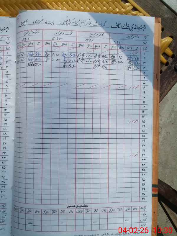 | CNIC | Full Name | Designation | R/C | Absence During Last Calender Month |