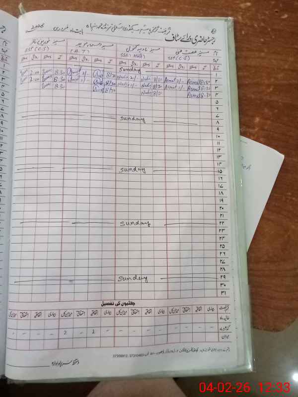 | CNIC | Full Name | Designation | R/C | Absence During Last Calender Month |