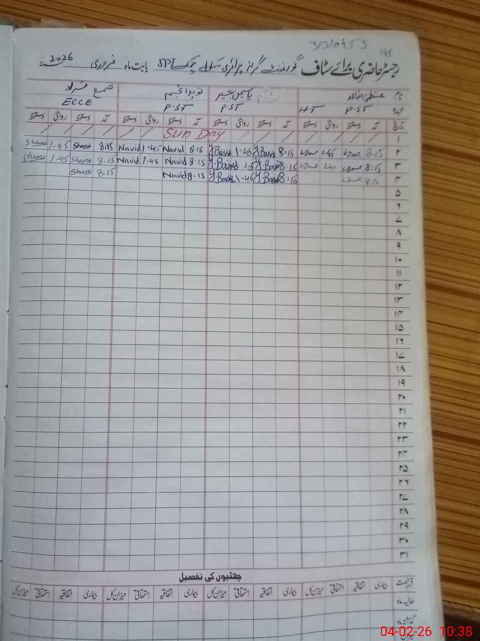 | Name: Uz**** Kh**** Designation: (School Headmaster's/Headmistress's) PST Phone/Cell Number: 03**** |
