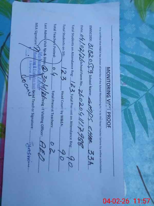 | EMIS Code: 31320559 | Name of School: GMPS CHAK NO. 33/A | |||