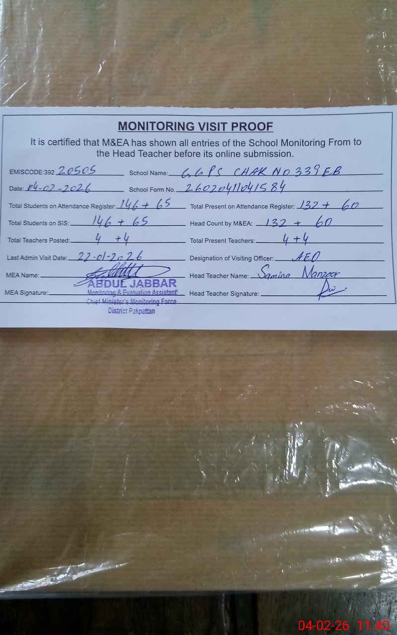 | EMIS Code: 39220505 | Name of School: GGPS CHAK NO.339/EB | |||