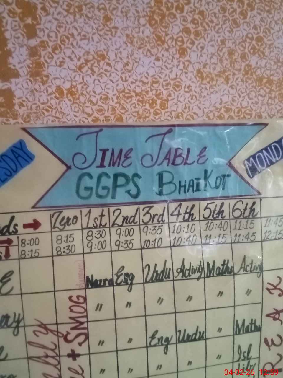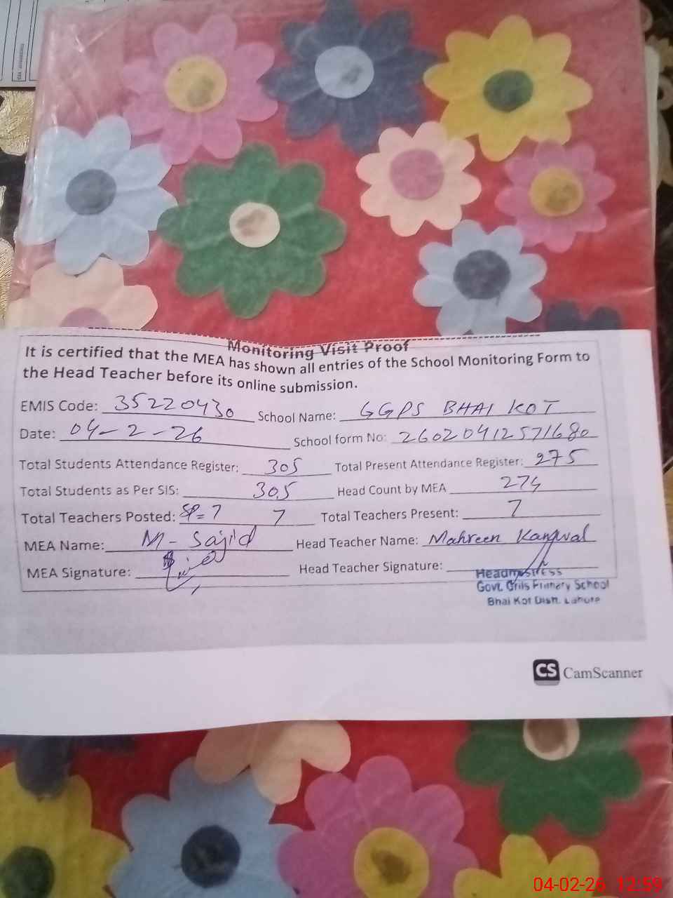| EMIS Code: 35220430 | Name of School: GGPS BHAI KOT | |||