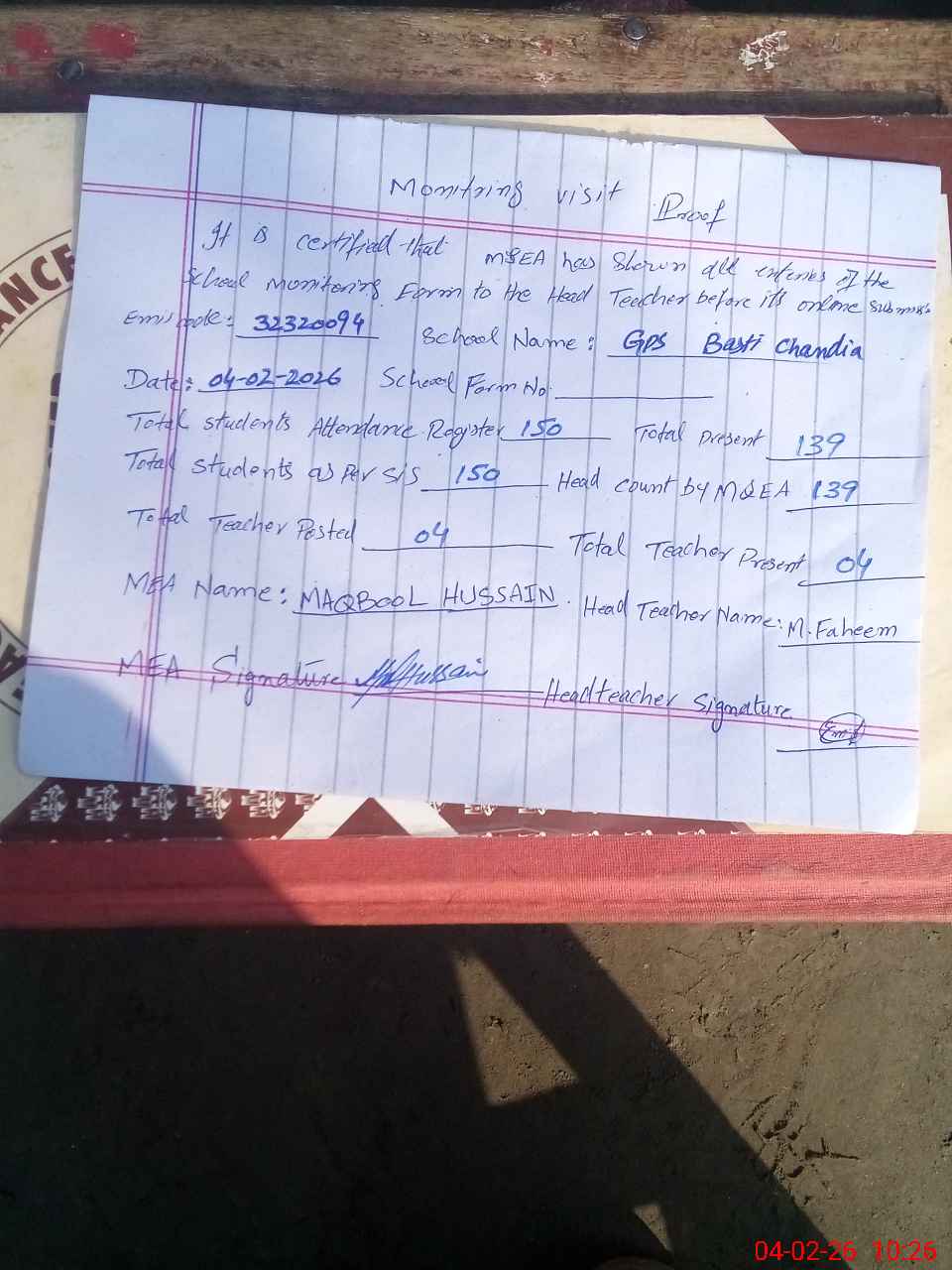 | EMIS Code: 32320094 | Name of School: GPS BASTI CHANDIA | |||