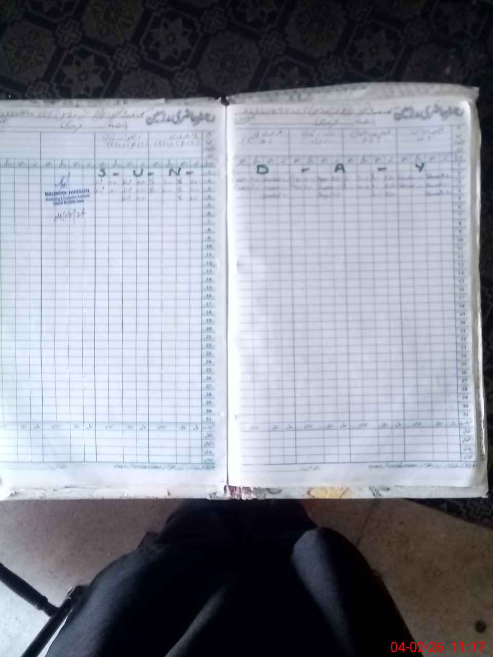 | CNIC | Full Name | Designation | R/C | Absence During Last Calender Month |