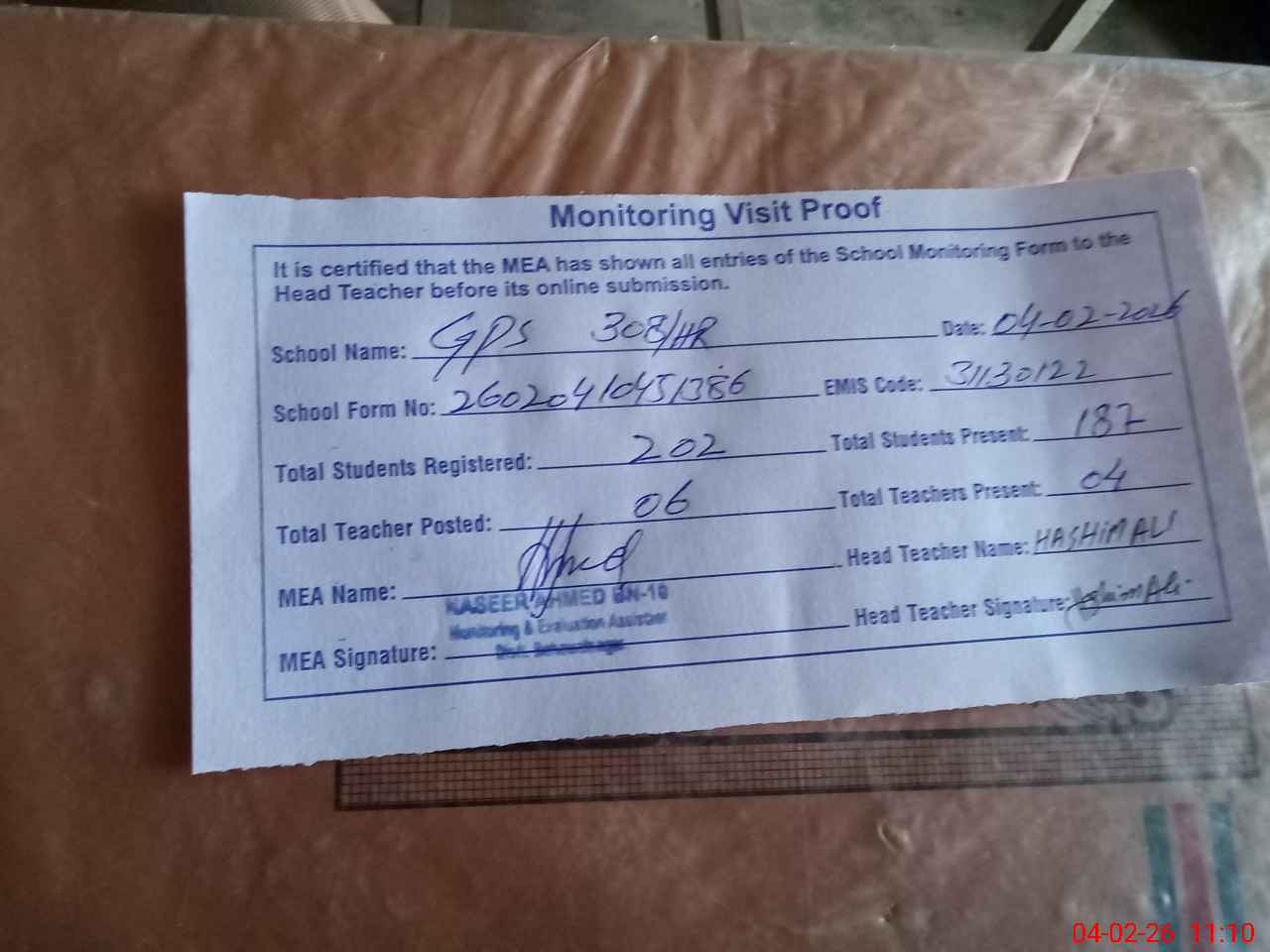 | EMIS Code: 31130122 | Name of School: GPS CHAK 308/HR SOUTH | |||
