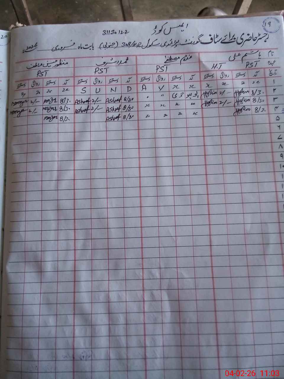 | Name: Ha**** Al**** Designation: (School Headmaster's/Headmistress's) PST Phone/Cell Number: 03**** |
