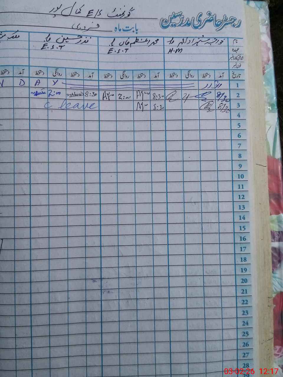 | Name: KH**** SH**** AH**** Designation: (School Headmaster's/Headmistress's) SSE ENGLISH Phone/Cell Number: 03**** |