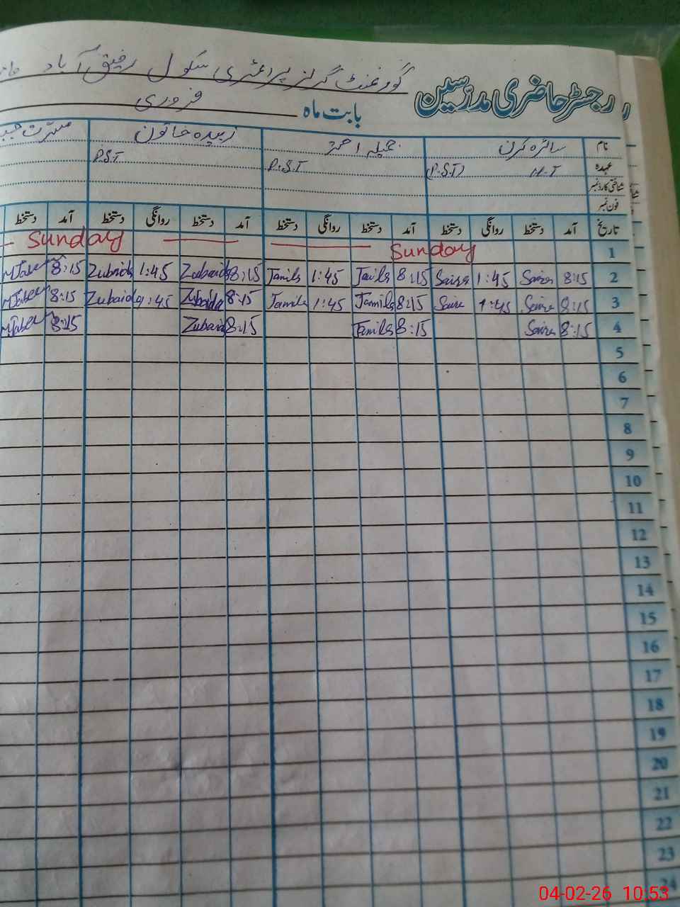 | CNIC | Full Name | Designation | R/C | Absence During Last Calender Month |