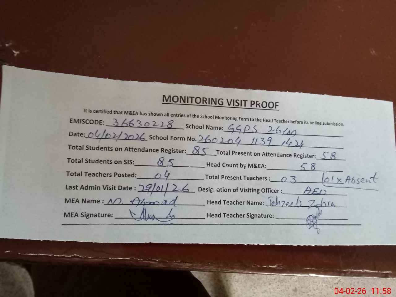 | EMIS Code: 36630228 | Name of School: GGPS 26M | |||