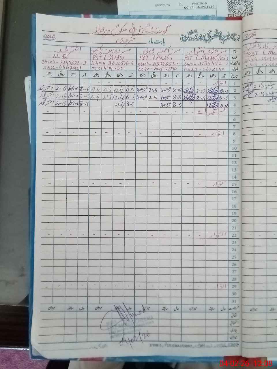 | Name: PA**** SA**** Designation: (School Headmaster's/Headmistress's) SSE(A) Phone/Cell Number: 03**** |