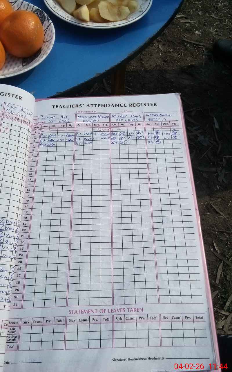 | Attendance Register | Head Teacher | MEA with School | Visit Proof |