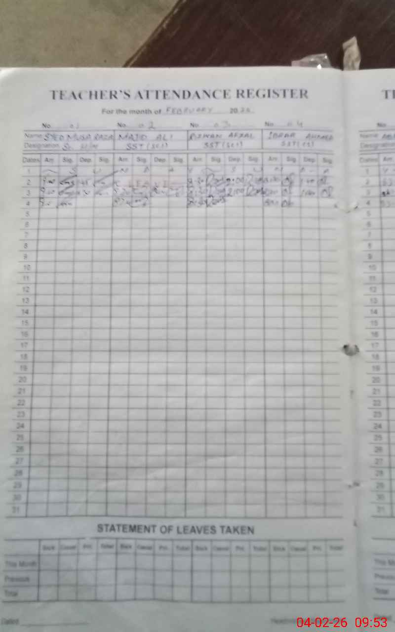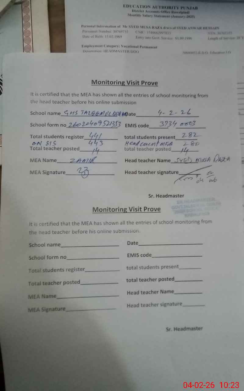 | Name: Sy**** Mu**** Ra**** Designation: (School Headmaster's/Headmistress's) SR.HM Phone/Cell Number: 03**** |