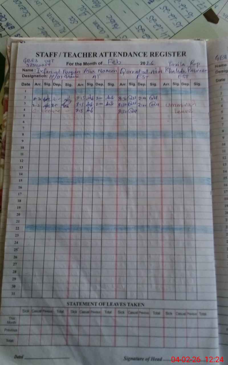 | EMIS Code: 37340059 | Name of School: GES UNIVERSITY COLONY TAXILA | |||