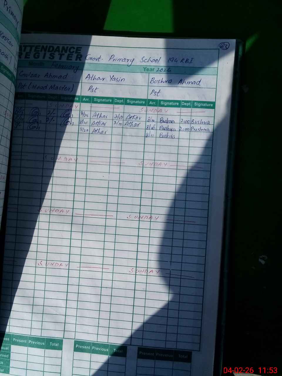 | Total Students Present | 0 | 0 | 33 | 34 | 35 | 25 | 27 | 192 | ||||||||