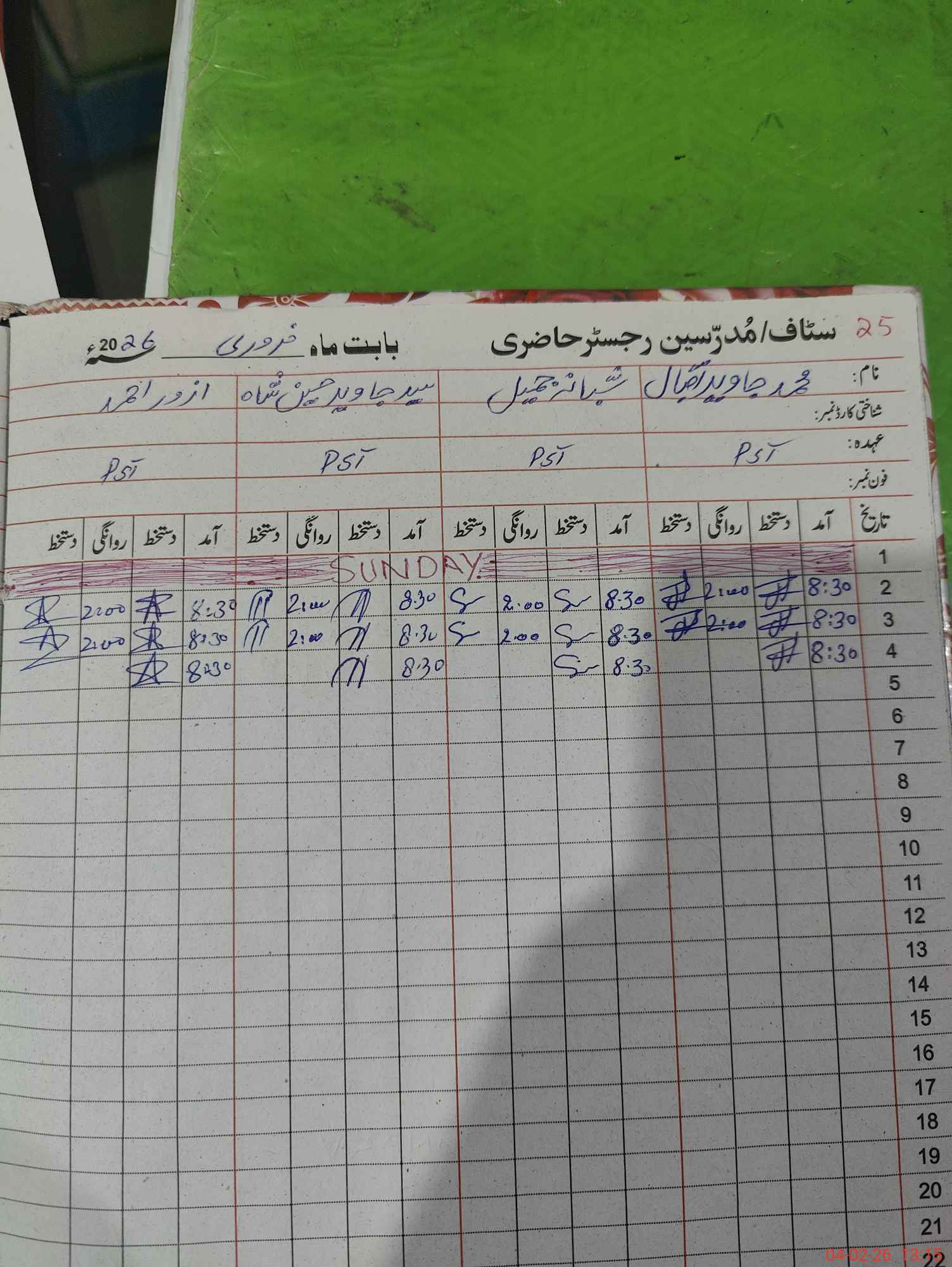 | Name: Mu**** Ja**** Iq**** Designation: (School Headmaster's/Headmistress's) PST Phone/Cell Number: 03**** |