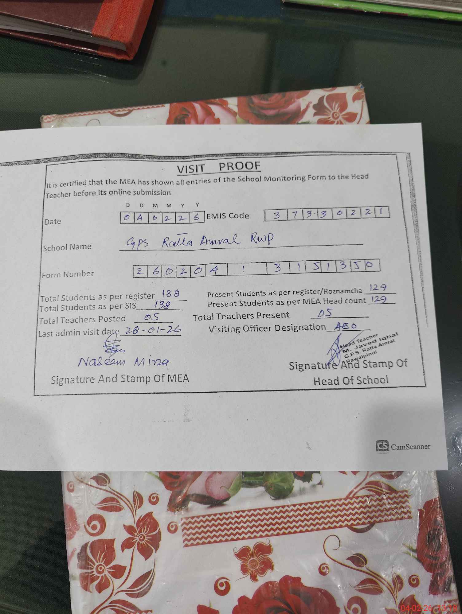 | EMIS Code: 37330221 | Name of School: GPS RATTA AMRAL | |||