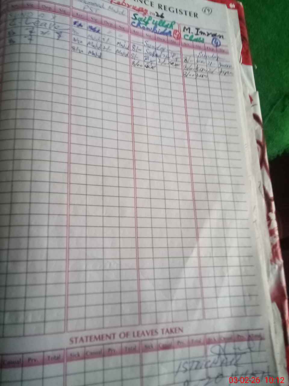 | Leave | Duty | Absent | Maternity | Medical | Ex- Pak |