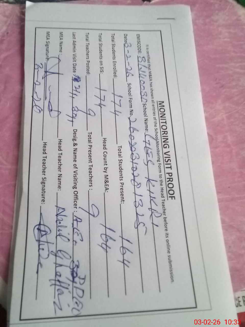 | Certified that this School was Inspected by the Undersigned MEA/DMO Today and the Information Stated Above is as Per Record. | |||||