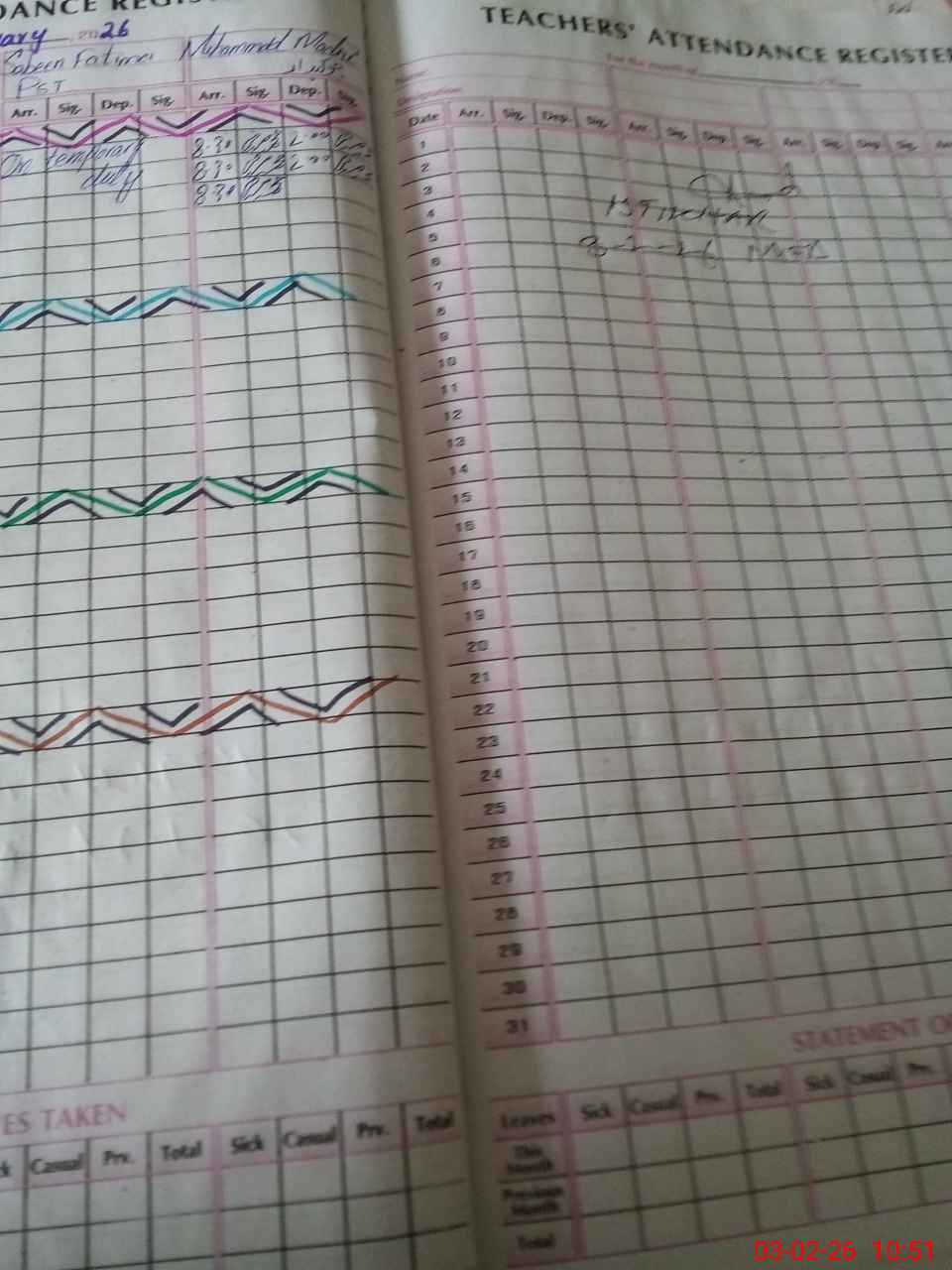 | Leave | Duty | Absent | Maternity | Medical | Ex- Pak |