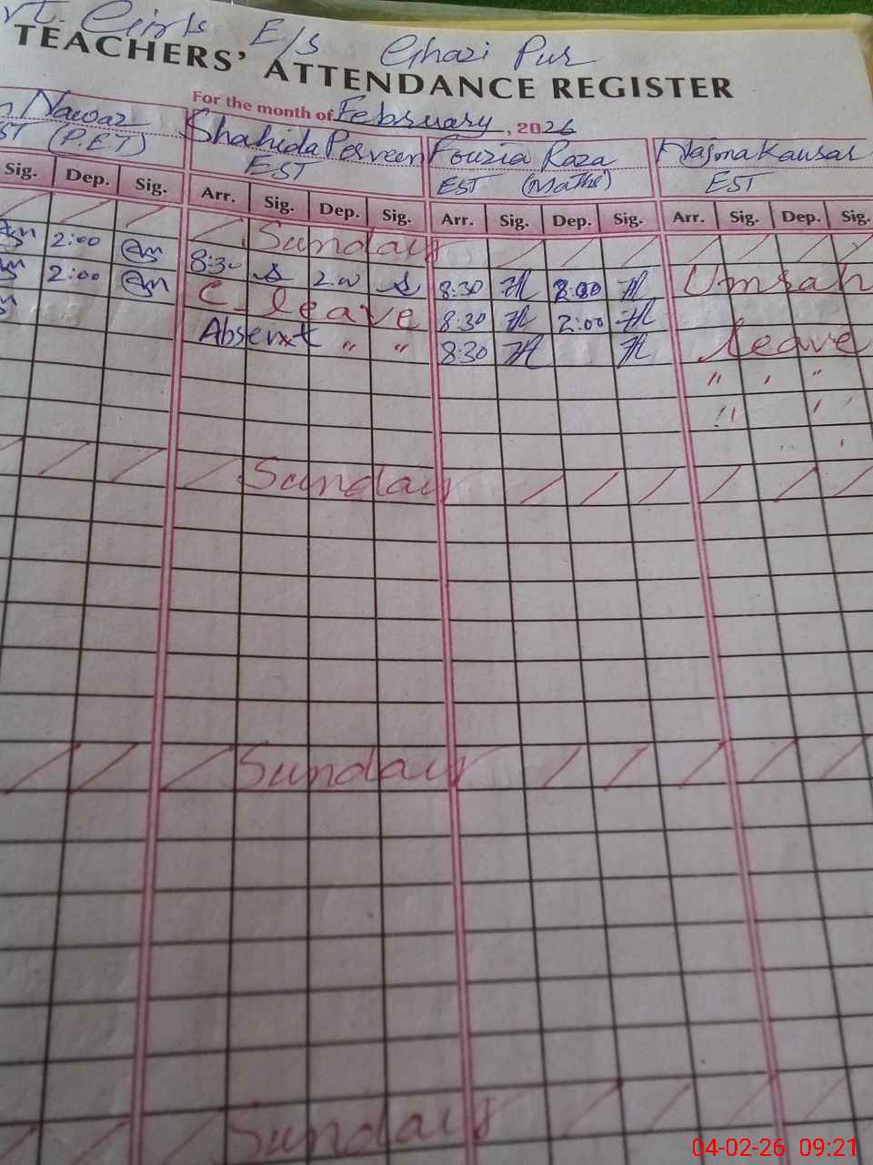| 36**** | Sh**** Pe**** | EST General Arts | Regular | 0 | 0 | 0 | 0 | 0 | 0 | 0 | 0 | 0 | Absent (Un-Authorized) |