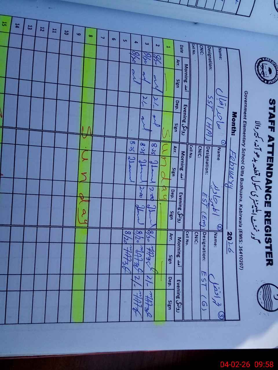 | Name: Kh**** Al**** Hu**** Designation: (School Headmaster's/Headmistress's) SST Sc Phone/Cell Number: 03**** |