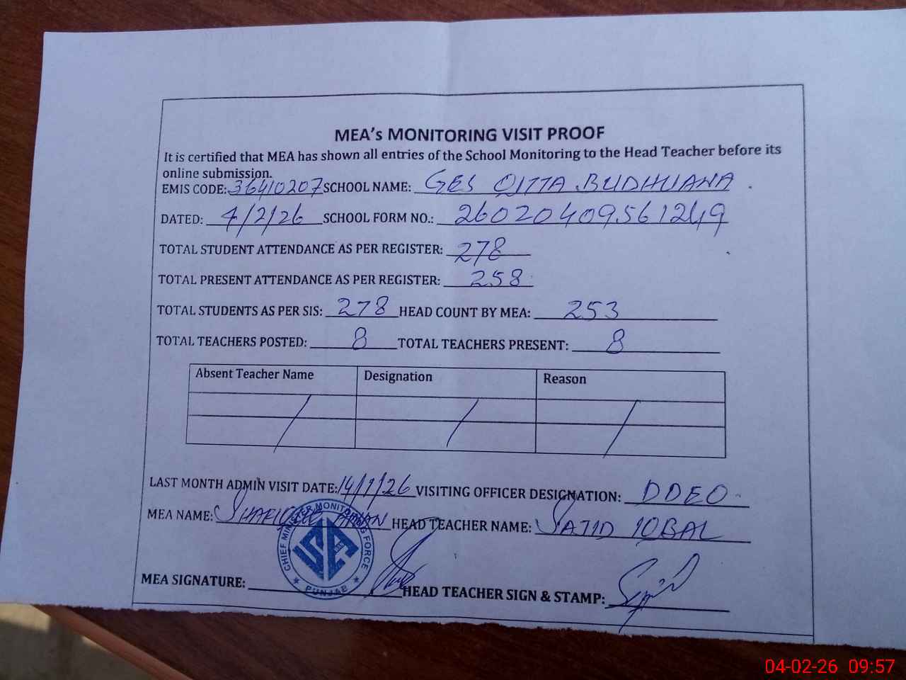 | EMIS Code: 36410207 | Name of School: GES QITTA BUDHUANA KABIRWALA | |||
