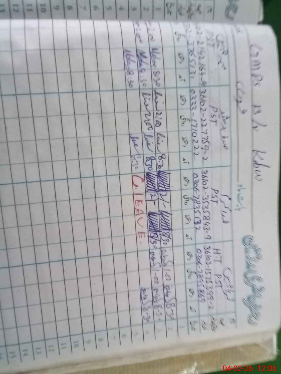 | CNIC | Full Name | Designation | R/C | Absence during last cal. month |