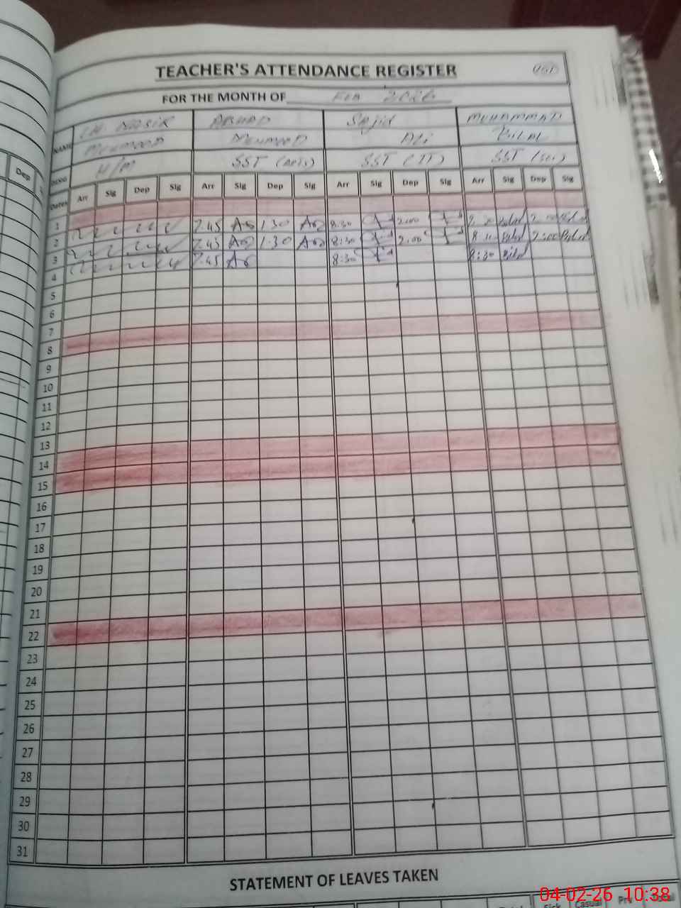 | Leave | Duty | Absent | Maternity | Medical | Ex- Pak |