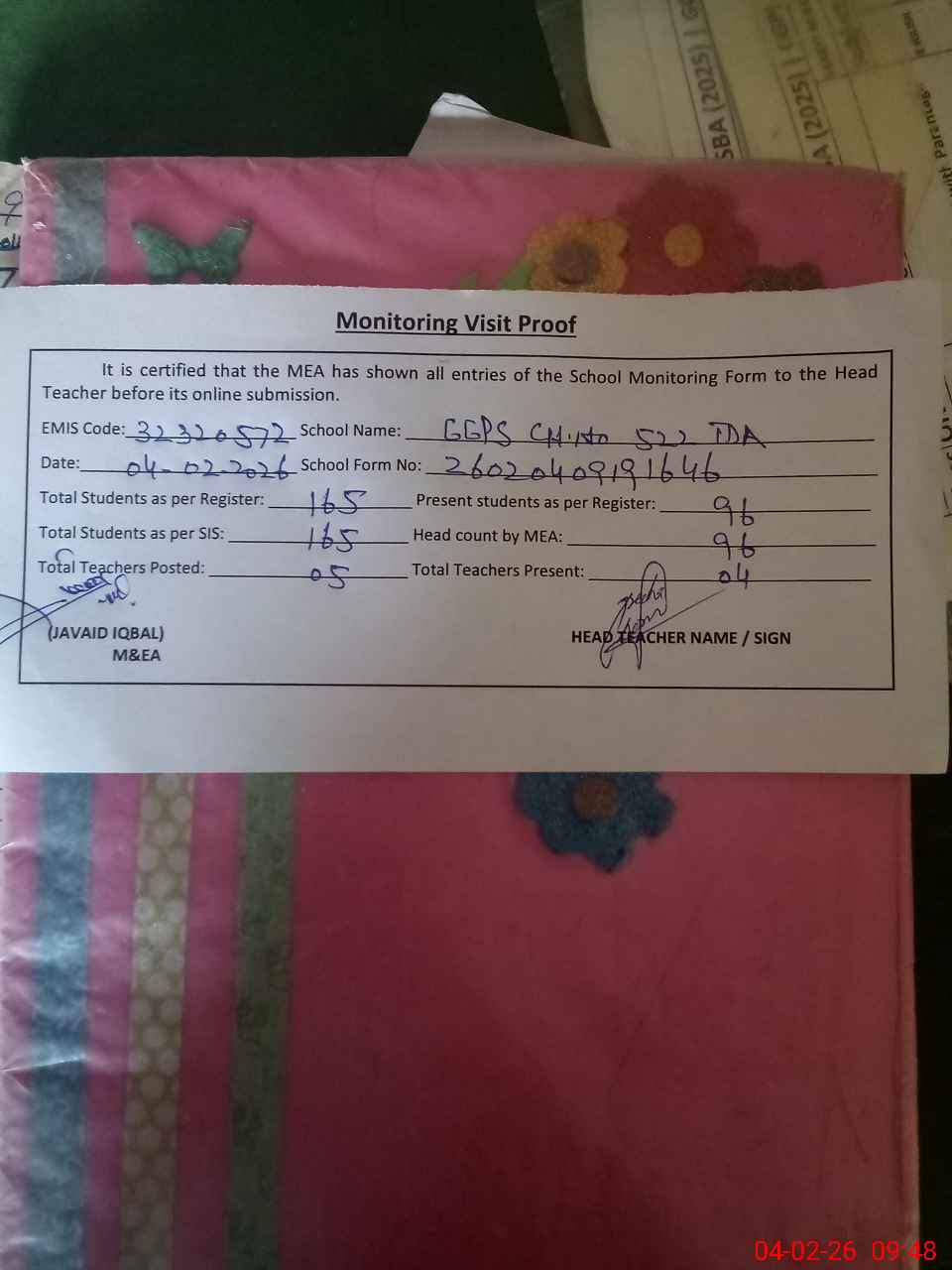 | EMIS Code: 32320572 | Name of School: GGPS CHAK NO. 522 TDA | |||