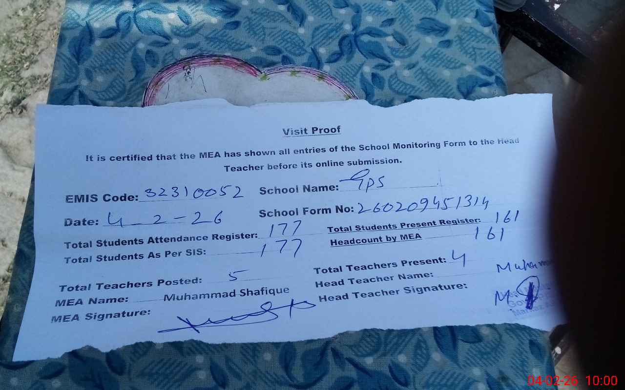 | Attendance Register | Head Teacher | MEA with School | Visit Proof |