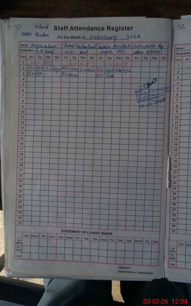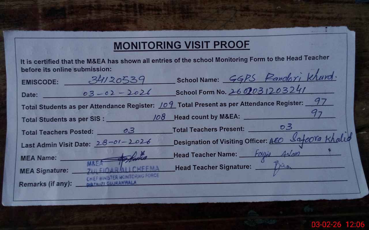 | EMIS Code: 34120539 | Name of School: GGPS PANDORI KHURD | |||