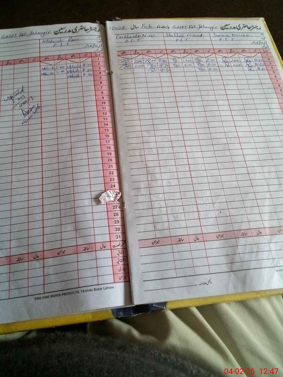 | EMIS Code: 34120454 | Name of School: GMPS KOT JAHANGIR | |||