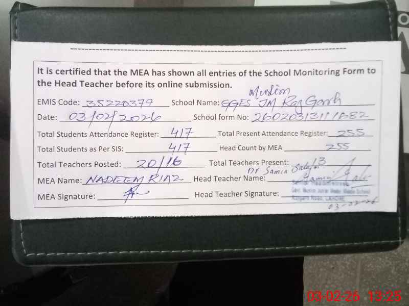 | Certified that this School was Inspected by the Undersigned MEA/DMO Today and the Information Stated Above is as Per Record. | |||||