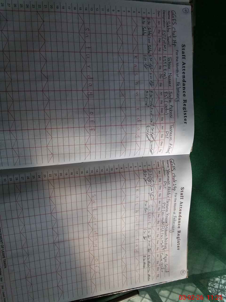 | Leave | Duty | Absent | Maternity | Medical | Ex- Pak |
