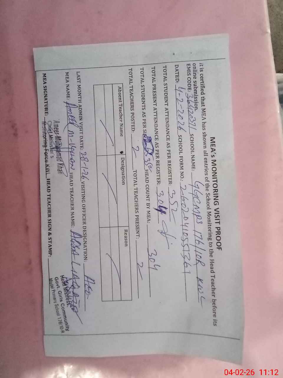 | Monitoring Date: 04-02-2026 | Start Time: 04-02-2026 10:40 AM | End Time: 04-02-2026 11:22 AM | Name of MEA: Am**** Mu**** Kh**** | |