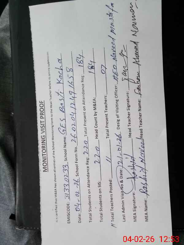 | EMIS Code: 31330233 | Name of School: GES BASTI KACHA | |||