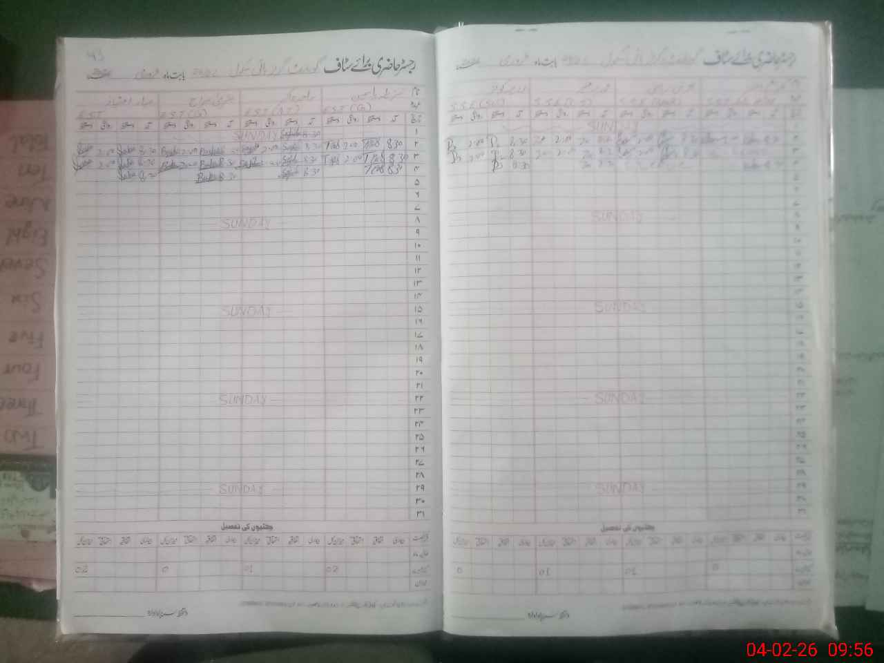 | CNIC | Full Name | Designation | R/C | Absence During Last Calender Month |
