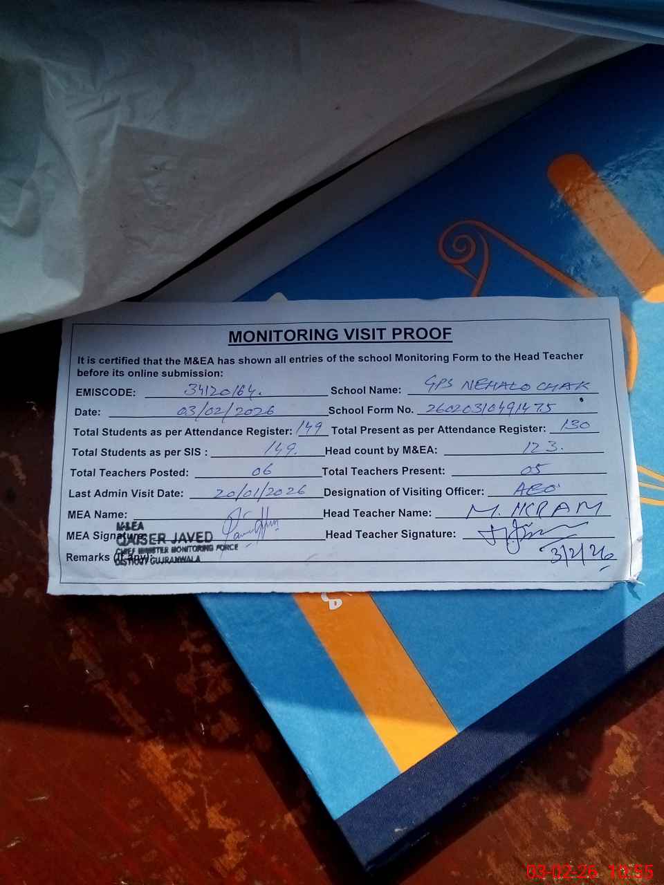 | EMIS Code: 34120164 | Name of School: GPS NEHALO CHAK | |||