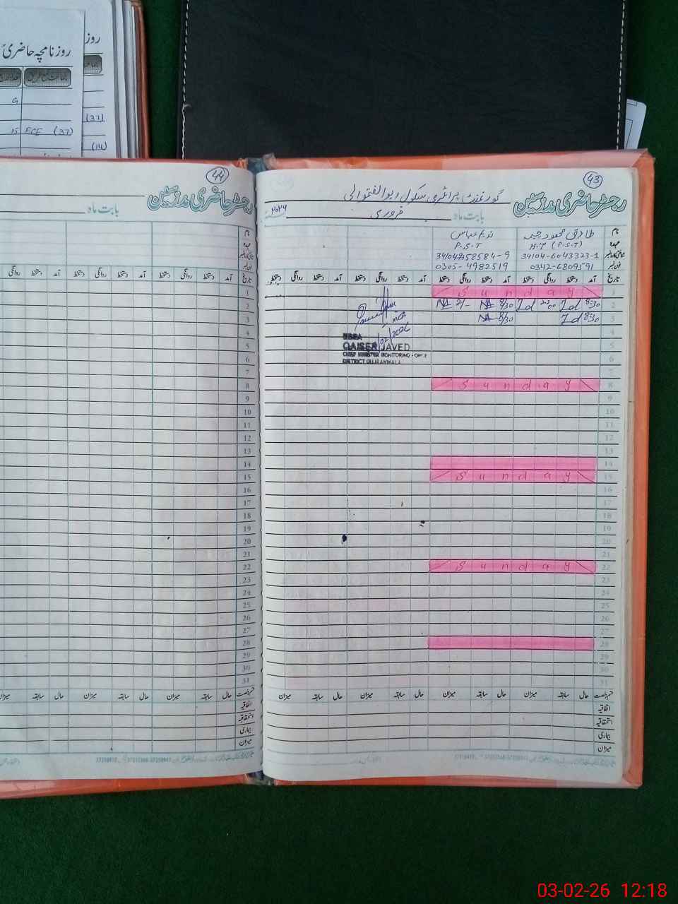 | Name: Ta**** Ch**** Designation: (School Headmaster's/Headmistress's) PST Phone/Cell Number: 03**** |
