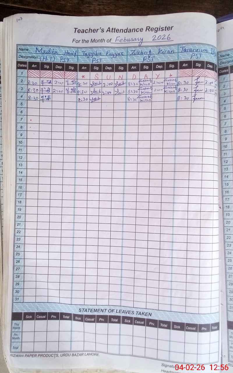 | Name: MA**** HA**** Designation: (School Headmaster's/Headmistress's) PST Phone/Cell Number: 03**** |