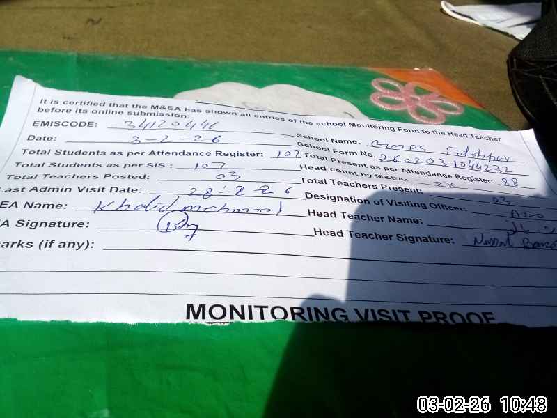 | EMIS Code: 34120446 | Name of School: GMPS FATEH PUR | |||