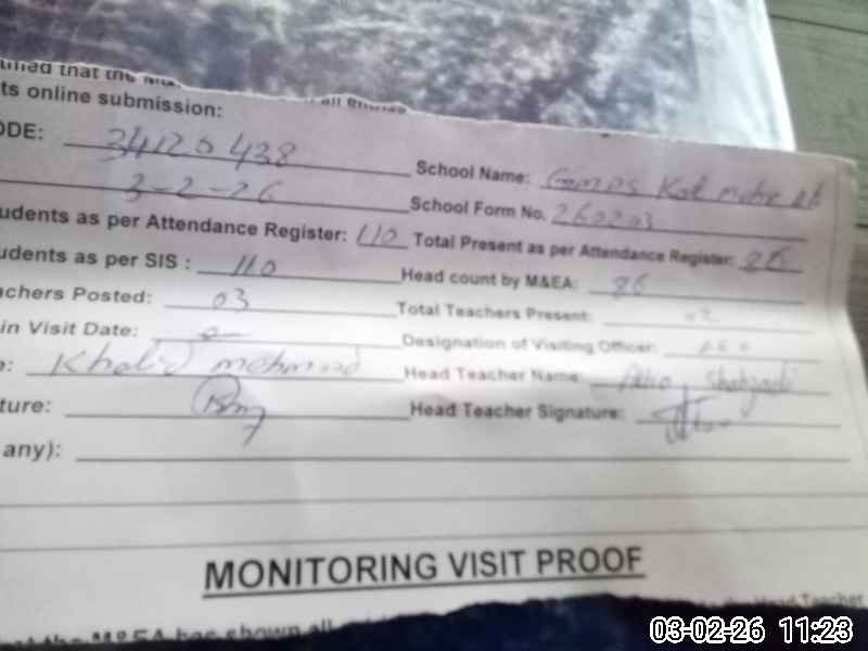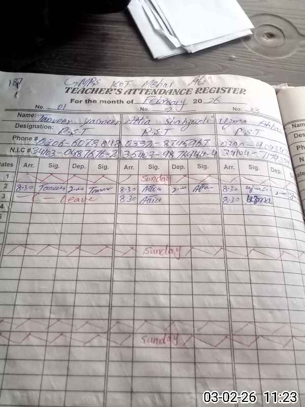 | EMIS Code: 34120438 | Name of School: GMPS KOT MEHR ALI | |||