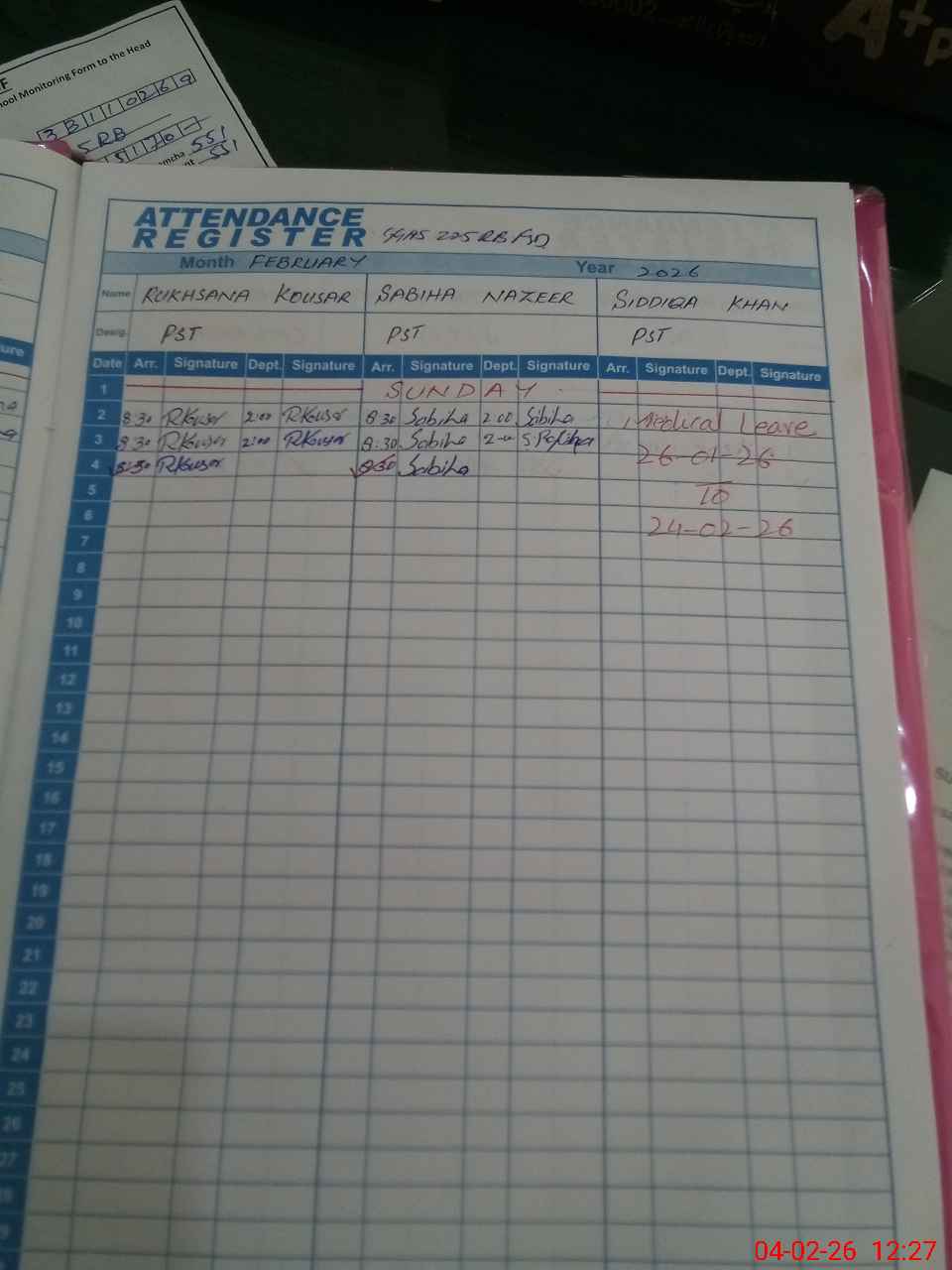 | Leave | Duty | Absent | Maternity | Medical | Ex- Pak |